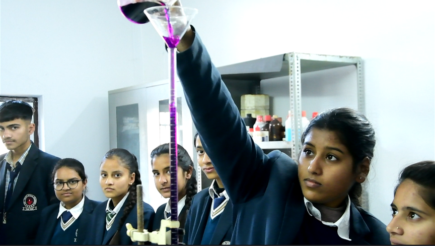 The chemistry laboratory is a well-equipped space where students conduct experiments to explore chemical reactions, properties of substances, and laboratory techniques. It includes essential safety equipment, glassware, and chemicals for hands-on learning. Students learn practical applications of chemistry, such as titration, synthesis, and analysis, enhancing their understanding of theoretical concepts.